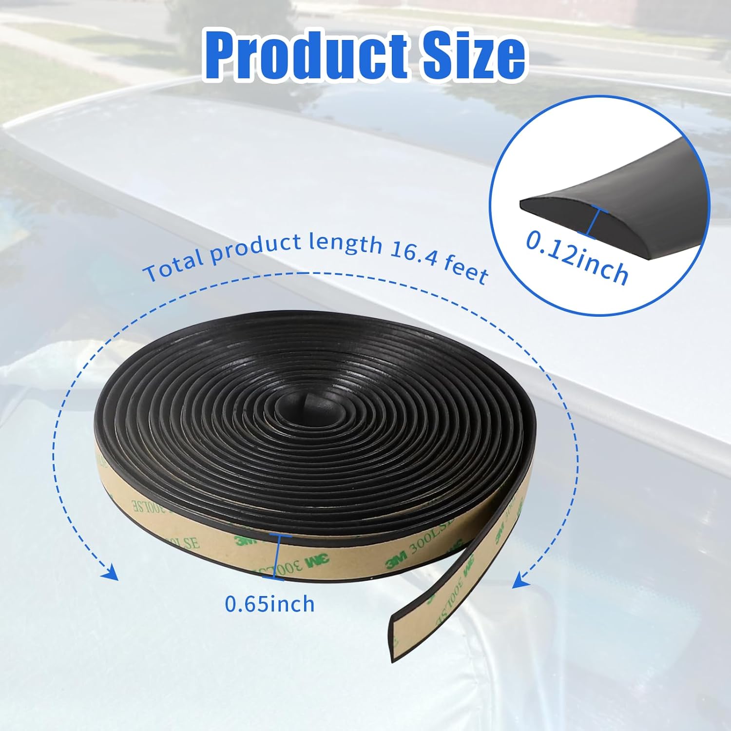 16.4Ft Car Weather Stripping, Automotive Sunroof Rubber Seal Strip, Flexible Dustproof Weather Strip Trim for Front Rear Windshield, Universal Car Accessories for SUV Truck