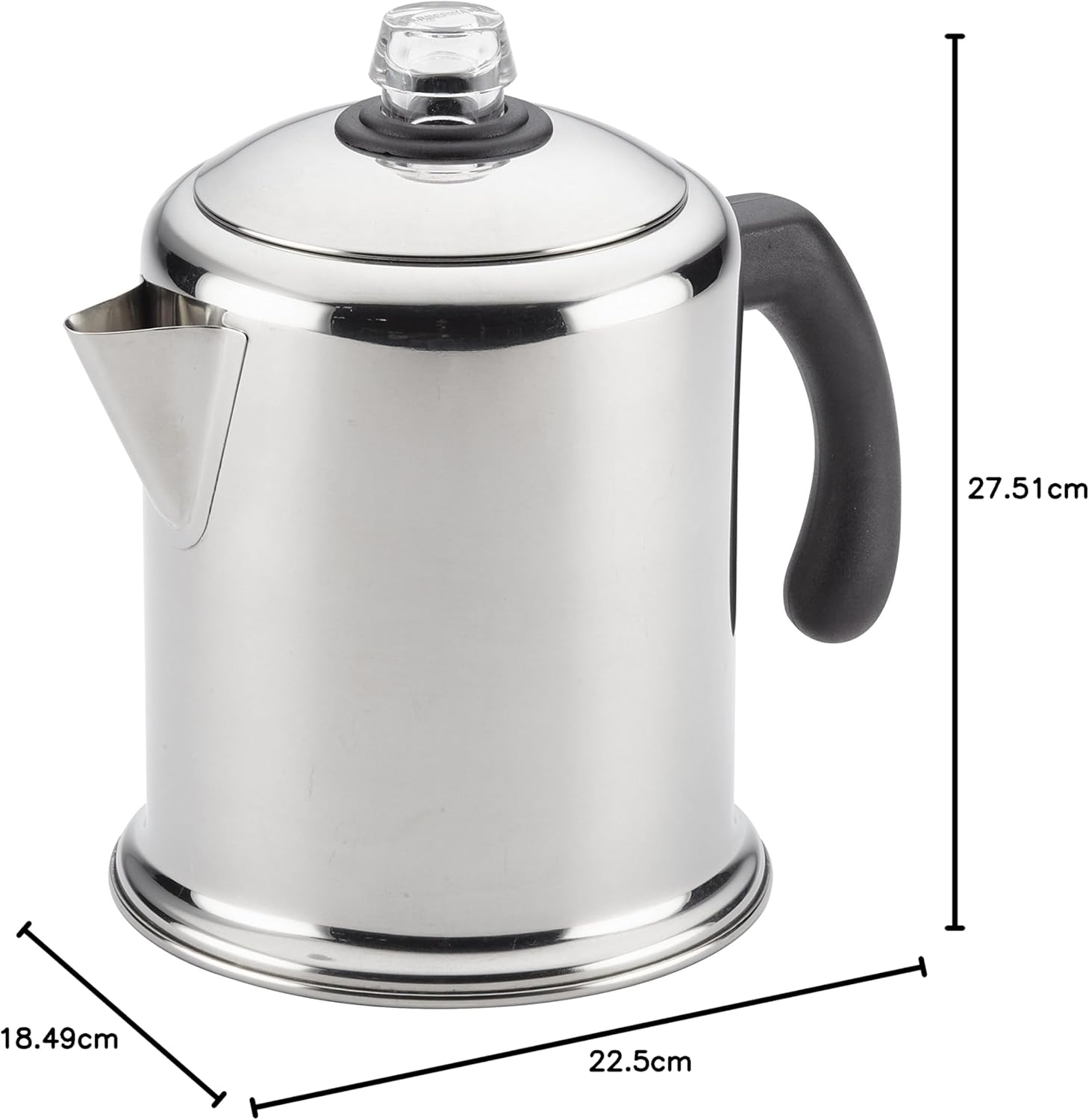Product Description Brewing coffee on the stovetop extracts a fuller, richer flavor, and this Farberware Classic Series Stainless Steel 8-Cup Yosemite Stovetop Percolator is ready to brew four to eight cups of your favorite blends. Farberware has been trusted for over 100 years, and this stainless steel percolator continues that tradition for a new generation. The heavy-duty stainless steel is polished to a mirror finish for a classic touch and the sleek and traditional look fits in with any kitchen decor. A comfortable handle with iconic styling offers a confident grasp and is designed to provide a balanced grip while making coffee or pouring delicious French roasts or flavored coffee blends. A non-reactive coffee maker interior keeps water from absorbing any undesirable odors or tastes. And, with a permanent percolator filter basket, there's no need to deal with messy paper filters. A tight-fitting lid seals in heat and the sturdy, see-through glass knob lets you know when percolating begins and ends. Fully immersible and dishwasher safe, this percolator makes a great addition to any of the Farberware collections. Get back to basics, and enjoy more flavorful coffee, using the Farberware Classic Series Stainless Steel 8-Cup Stovetop Percolator. Amazon.com At the first morning sip you'll say, “Forget the espresso maker!” True connoisseurs know that the best coffee comes from a freshly percolated pot. This classic stainless steel model will provide long lasting beauty. Why not start an 'old tradition' with Sunday morning coffee in bed?
