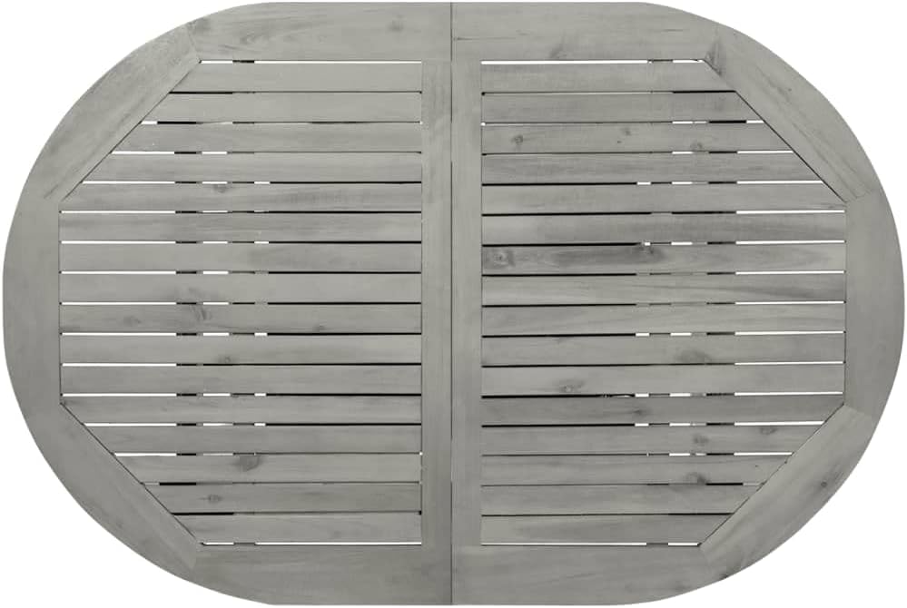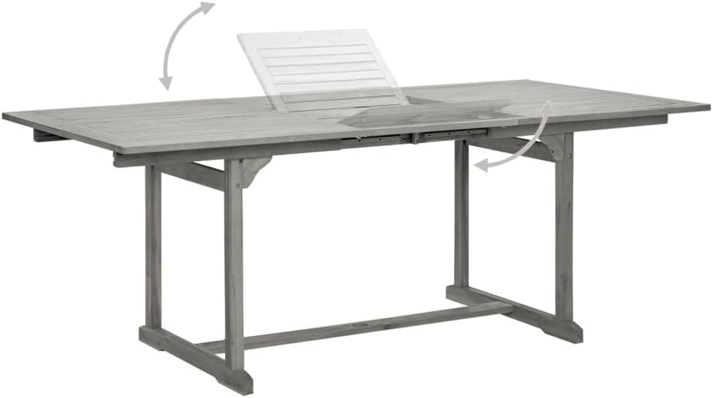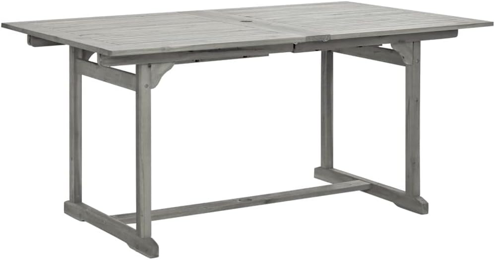 This wooden garden dining table adds a touch of rustic charm to your garden, terrace, or patio!The outdoor table is made of solid acacia wood, a tropical hardwood, which is weather-resistant and highly durable. Thanks to its special design, this garden table can be extended when extra space is required.Note: In order to extend the life of your outdoor furniture, we recommend you to clean it regularly and do not leave it outdoors without protection unnecessarily.Clean: Use a mild soap solution.Storing: If possible, store in a cool, dry place indoors. If the product is stored outdoors, protect it with a waterproof cover. Wipe and dry the excess water or snow from flat surfaces after a rain or snowfall. Allow sufficient air circulation to avoid moisture-related damage.Color: GrayMaterial: Solid acacia wood with gray wash finishDimensions: (47.2"-66.9") x 31.5" x 29.5" (L x W x H)ExtendableWith an umbrella holeAssembly required: Yes