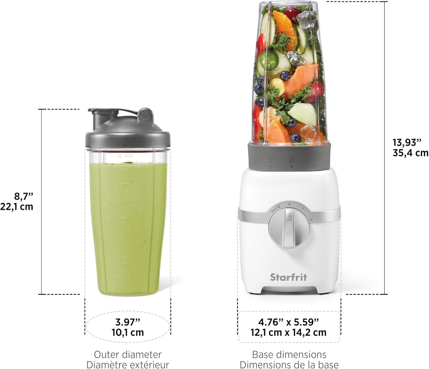 Blend your favorite smoothies, shakes, and drinks effortlessly with the Starfrit Electric Personal Blender. Featuring a powerful 300-watt motor and stainless steel blades, this blender is designed for versatility and convenience. The 28-ounce BPA-free blending jar is perfect for on-the-go use, and its compact design ensures easy storage. With dishwasher-safe components and advanced safety features, cleanup and operation are simple and secure. Ideal for anyone looking to enjoy healthy, delicious drinks with ease.Versatile Blades: Includes blending and grinding blades, perfect for frozen drinks, smoothies, coffee beans, nuts, and spices.Powerful Motor: 300-watt motor crushes ice and blends ingredients smoothly.Convenient Design: 28-ounce BPA-free jar, compact for easy storage, and ideal for on-the-go use.Safety Features: Non-stick suction feet and security feature ensure stable and safe operation.Easy Cleanup: All parts are dishwasher safe, making maintenance a breeze.