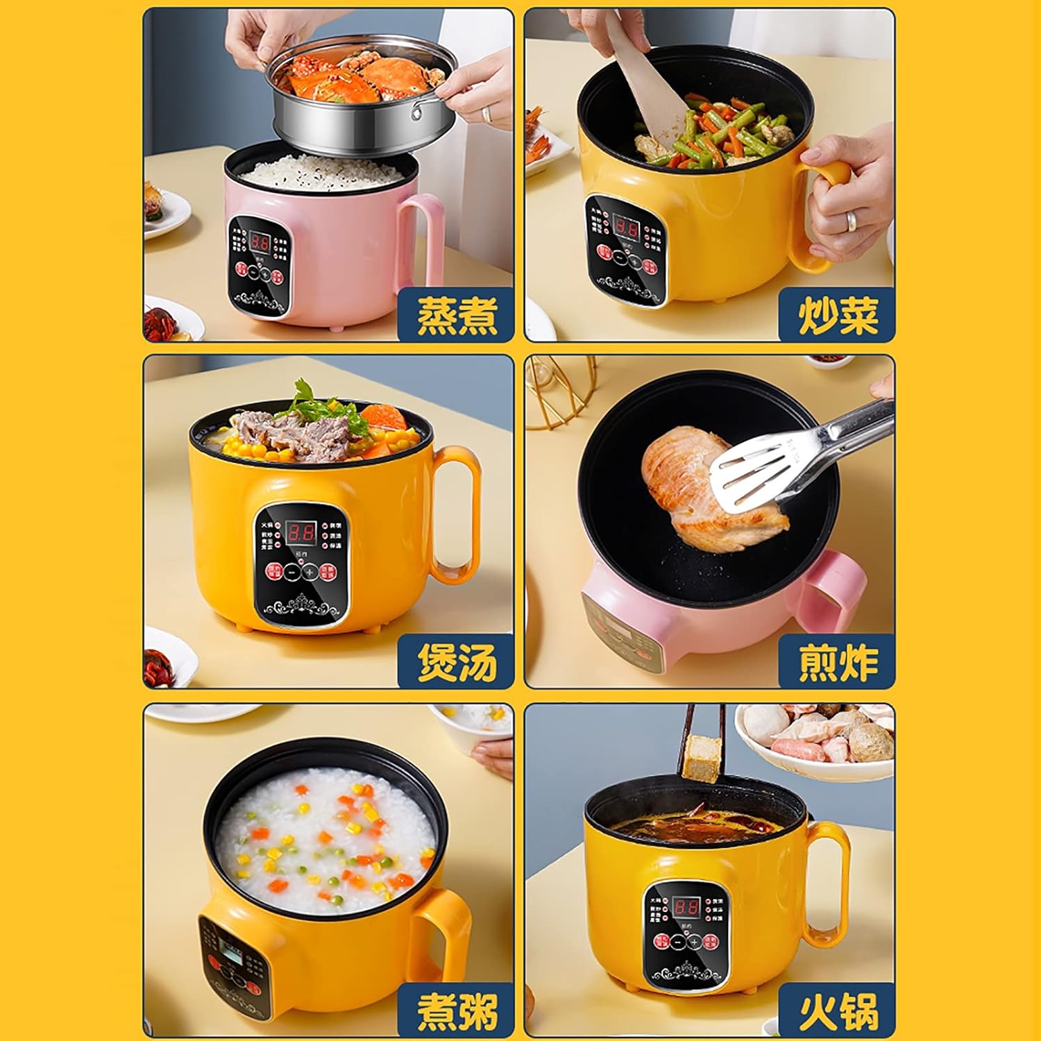 Name: Rice Cooker/soup pot/SteamerHeating method: chassis heatingLiner material: non-stick coating inner pot1.6L suitable for 1-2 peopleFunction: rice, sushi rice, porridge, cake, egg, stew, etc.Note:1. Please don't worry about the voltage problem, we will give a local conversion plug according to your address.-