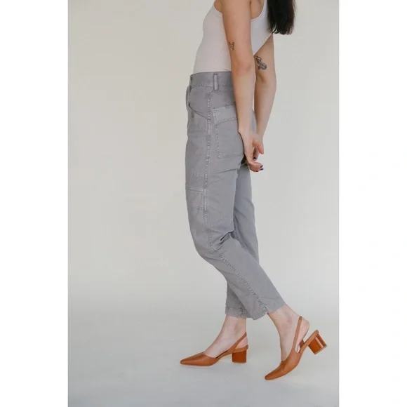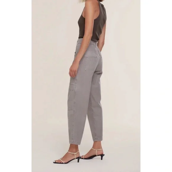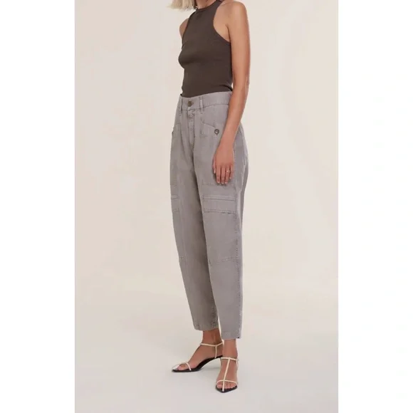 A pair of ankle length AGOLDE cargo pants with a comfy high-rise, and a military-inspired details. Style them with anything from an easy cotton tank to a frilly floral blouse, then add sandals or sneakers—your choice.Color:mushroom Fabric: Mid-weight, non-stretch twill2 patch and 4 flap pocketsCargo styleAnkle length, straight-cut styleButton closure and zip flyShell: 100% cottonWash coldMade in the USA of imported materials
