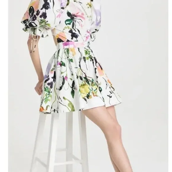 Aje Drift Puff Sleeve Mini Dress Botanic Floral Size 6
