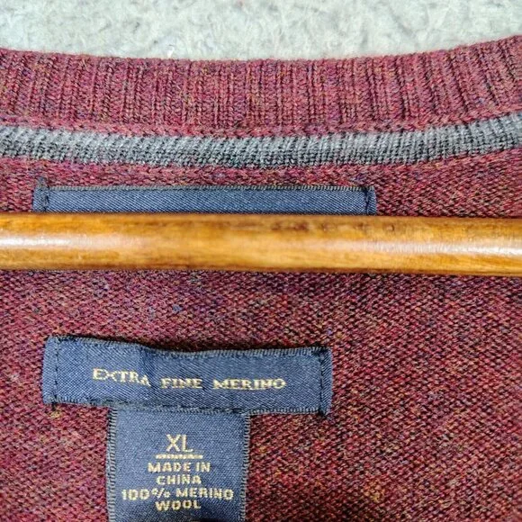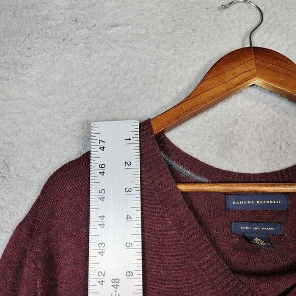 Banana Republic Sweater Men's XL Red 100% Extra Fine Merino Wool V-Neck ClassicPre-owned no notable flaws.Please Note:Used items are subject to imperfections. The tag size may differ from the actual size due to shrinkage or stretching. All clothing includes photo measurements. Please review all photos and read the description before making a purchase. Measure your own best fitting garments for comparison. Please feel free to message us with any questions. We are always happy to assist you.Fast Shipping!We offer fast shipping so you can enjoy your order sooner. We are happy to combine shipping for you to save even more. We do our very best to describe our items accurately and honestly to provide you with the best-informed purchasing decision. We want your confidence and your 5 Star recommendation. Be assured you will always get 5 stars from us.
