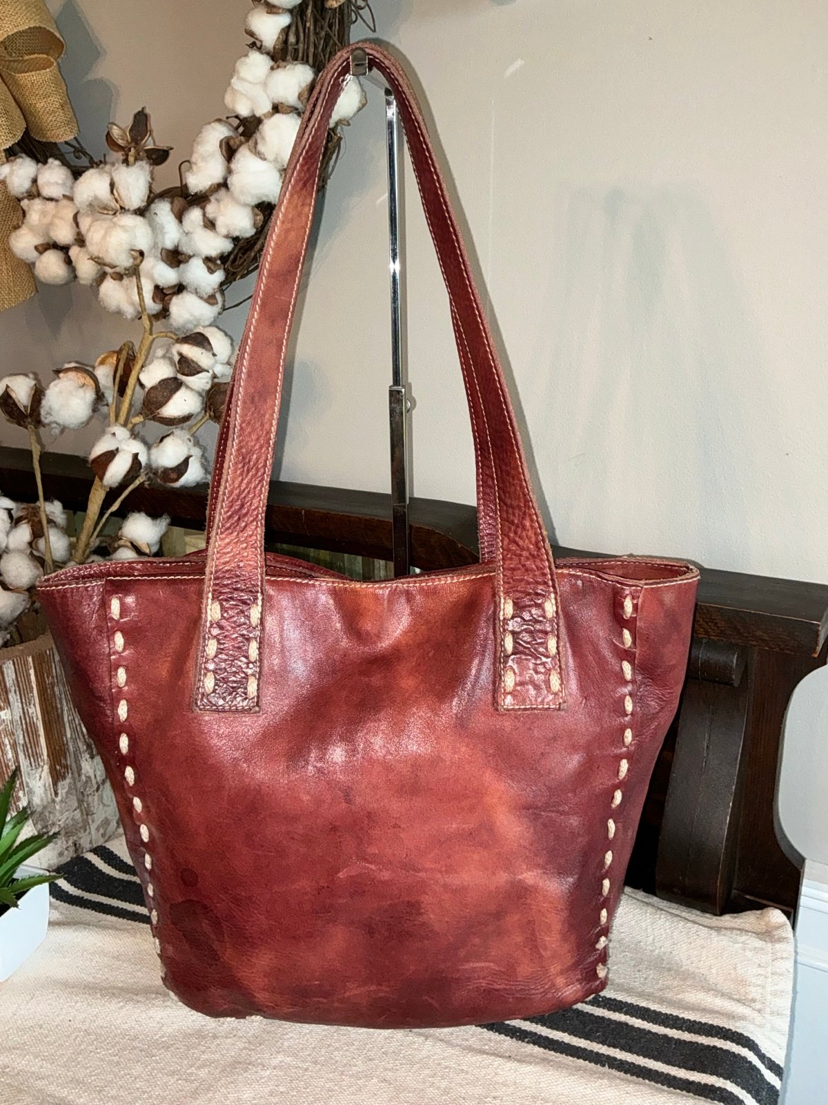 Bed Stu Leather Stevie Tote Shoulder Bag Merlot Deep Red Retail $255