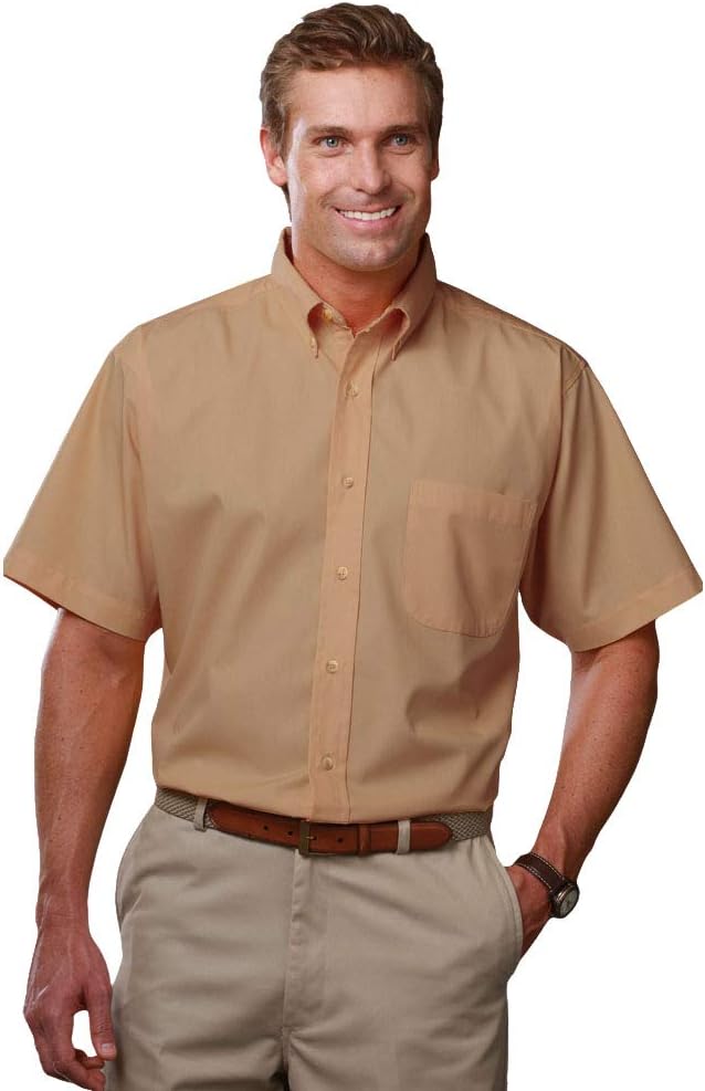 Men's wrinkle resistant short sleeve teflon treated twill button-down.