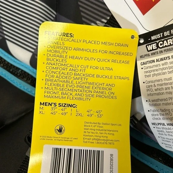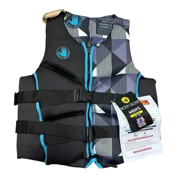 Body Glove Men's Segmented PFD - U.S. Coast Guard-Approved PFD. NWT. Never worn. Multiple sizes The Body Glove Men’s Segmented PFD offers a lightweight, durable, yet flexible fit that does not hinder the users action while wakeboarding or riding on a PWC. A multi-panel design with oversized armholes will increase the range of motion, which provides increased mobility and comfort. An updated inner liner allows for more airflow throughout the vest, allowing it to dry quickly while giving you a more comfortable fit. The Body Glove Men’s Segmented PFD is the essential vest for your water sport’s needs.Strategically-placed mesh drain panelsOversized armholes for increased mobilityDurable heavy-duty quick-release bucklesAnatomically cut for ultra comfort and fitConcealed backside buckle straps for added safetyBreathable, lightweight and flexible EVO-PRENE exteriorMulti-segmentation panel on front, back and side provides maximum flexibilityMEN'S SIZING:M: 37" - 41"L: 41" - 45"XL: 45" - 49"2XL: 49" - 53"