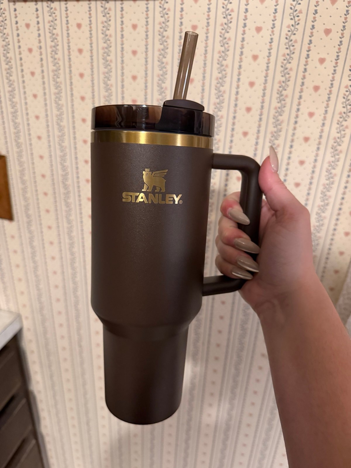 100% authentic Chocolate Gold Stanley 40oz. Very Gently used. Lid is scratched from using the wrong sponge to wash it but cup is in pretty much perfect condition. Doesn’t come with box unfortunately. Very good condition. Accepting offers.