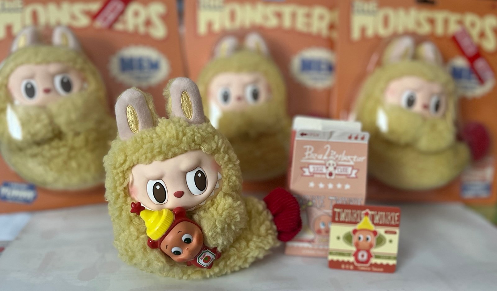 ⭐️This is a hand customized Labubu Shrimp earphone case holding a Twinkle Twinkle Ketchup sauce. 100% AUTHENTIC POPMART Wacky Mart series Shrimp Labubu.