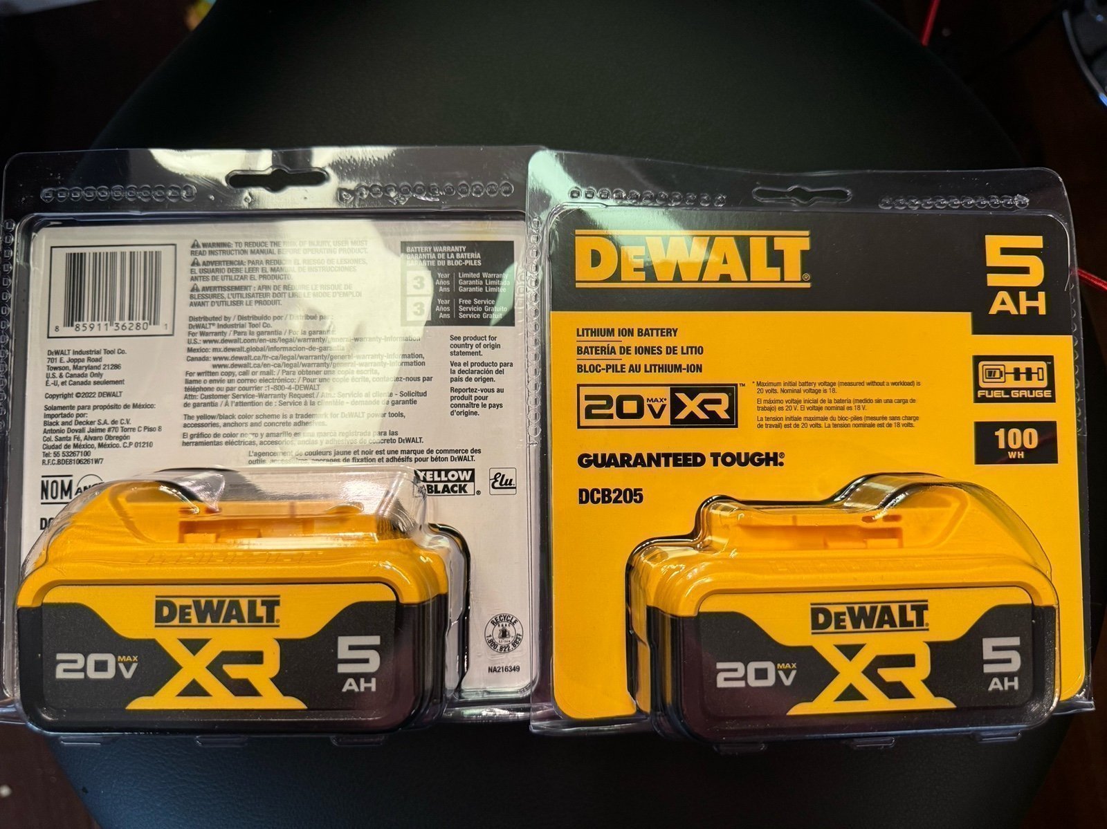 DeWalt DCB205 20V MAX XR Premium Lithium-Ion 5.0Ah Battery Pack X 2 Packs