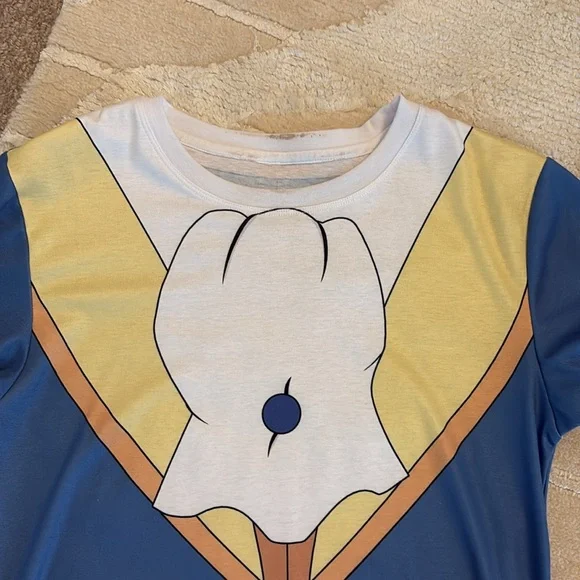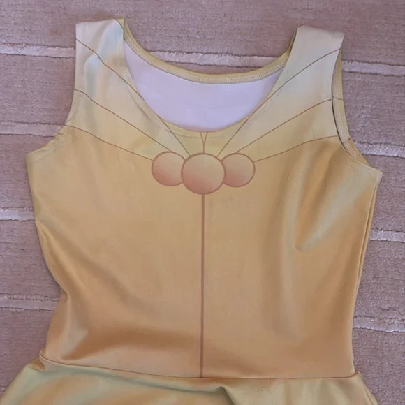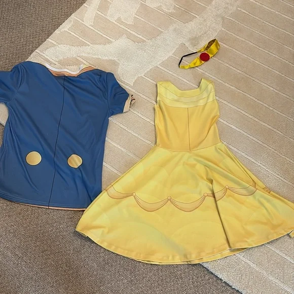 Worn for Disney half marathon once!! Very stretchy and comfy! Moisture-wicking fabric. Collar stain on t-shirt but can’t see when worn! charming yellow and blue costume set, perfect for imaginative play and dress-up fun. The vibrant colors and playful design make it a must-have for any costume collection.