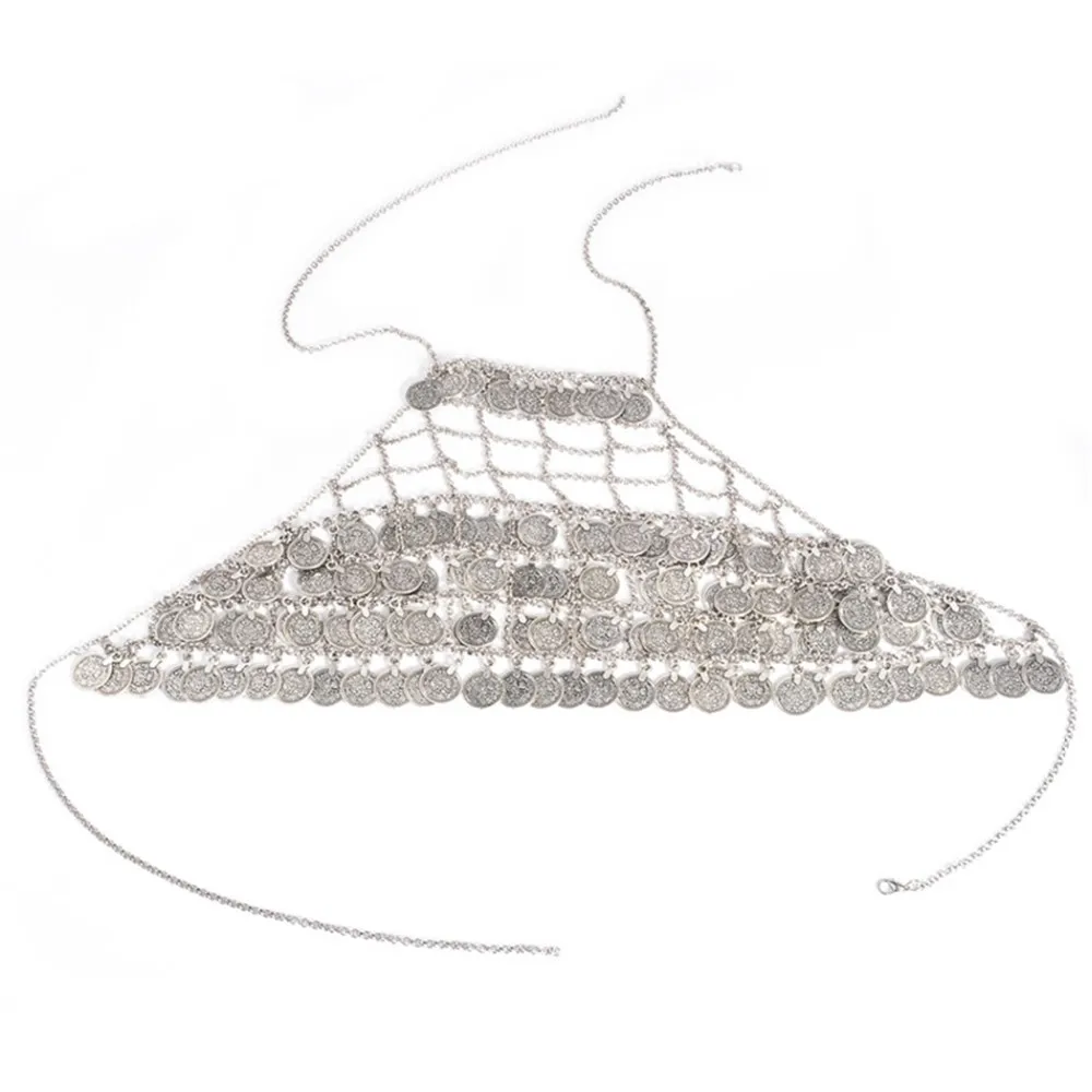 product :Full Coins Tassel Chest Chain For Summer Beach Party Bohemian Gypsy Afghan Ethnic Slave Harness Underwear Bra Sexy Body Jewelry