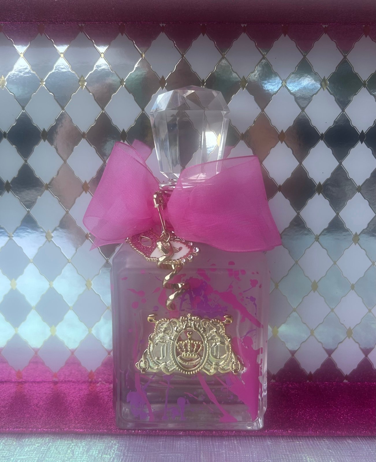 Kaleidoscope of jeweled fruits like pink kiwi and sparkling mandarin. At the heart, Indian Sambac, jasmine and lush, vibrant water lily radiate feminine charm, while sensual amber, musk and soft woods