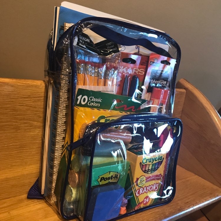 1 Backpack - clear with blue accents