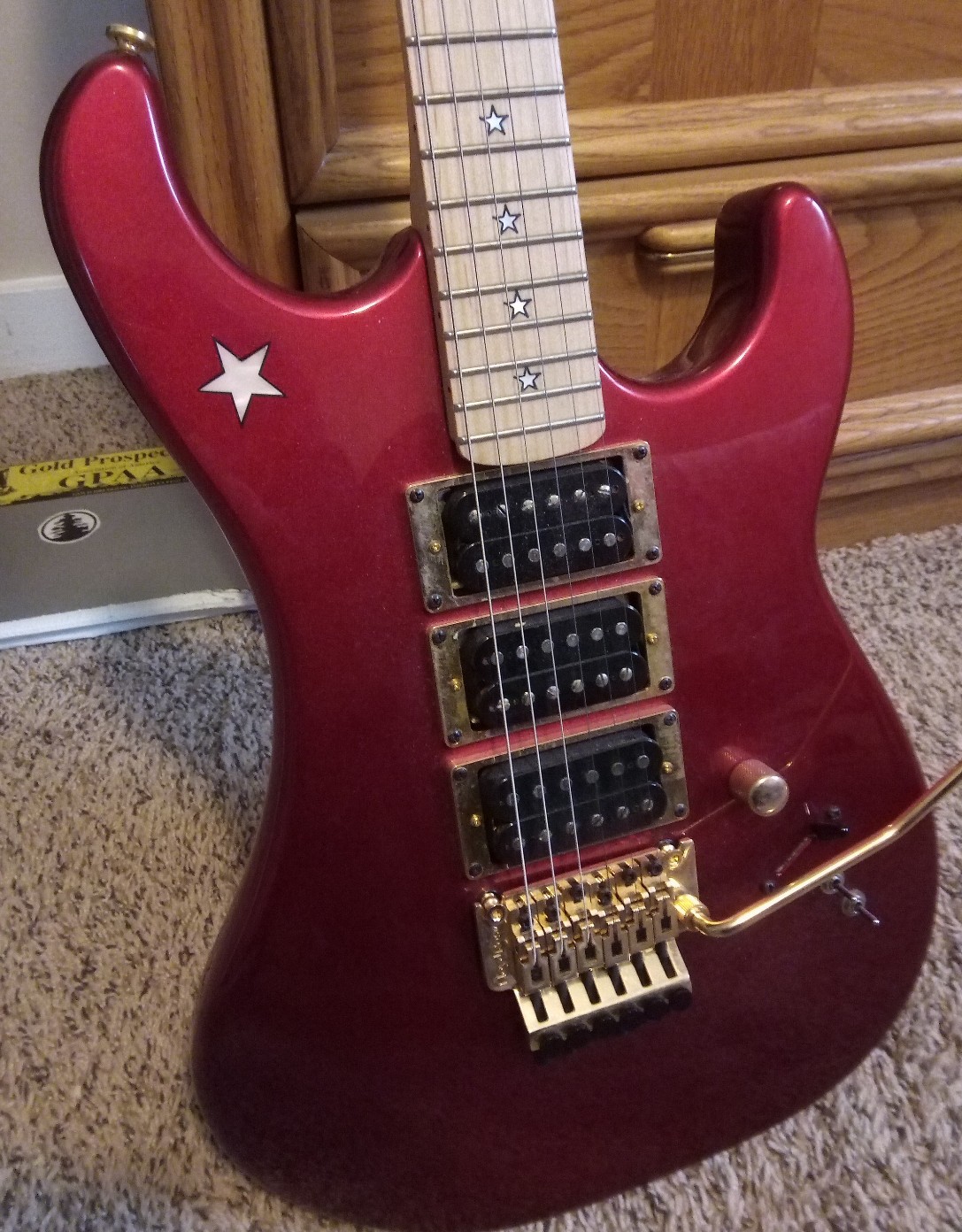 Nice gold plated pickups, tremolo, bar, and knobs.