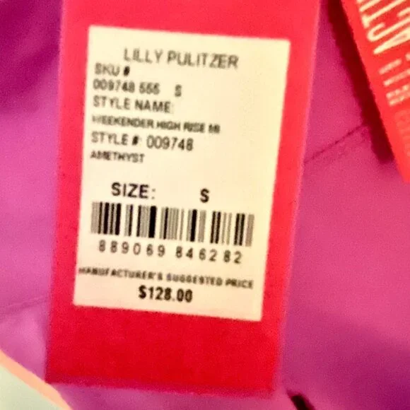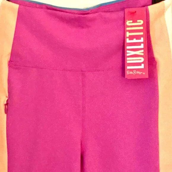 Lilly Pulitzer amethyst striped Weekender High-rise midi leggings- NWT $128- active Powerstretch - Luxletic fabric with UPF50+- zippered pocket on top right thigh - small slip pocket on back waistband perfect to stash a key- waist approx 13 inches- front rise approx 10 inches- leg opening approx 5 inches- inseam approx 23.5 inches- back rise approx 13 inches- size S- colors: amethyst, blue, white and orange- MSRP $128- HP0032- ships fast from a smoke & pet-free facilityThanks for stopping by!
