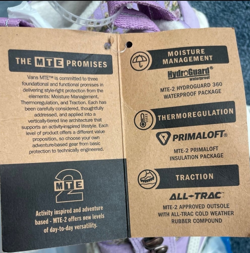 The purple floral uppers are treated with Hydroguard 360, a waterproof membrane bootie construction which is watertight, stretchable, and breathable to protect the suede and canvas.