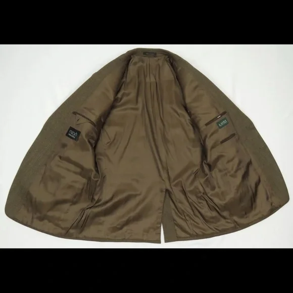 Description: NWOT Lauren Ralph Lauren LRL 100% Wool 2 Button Blazer Sport Coat Jacket -Two button closure -Two front pockets-Left chest pocket-Single vented back-Four button cuffs-Notch collar-Elbow patchesSize (Check Measurements): Mens 42 RColor: BrownFabric: 100% woolCondition: New Without TagsItem#: 66363Measurements are in inchesArmpit to armpit: 23"Back bottom of the collar to the hem: 30"Shoulder to shoulder: 19 1/2"Shoulder seam to end of cuff: 25"BUYING VINTAGEWe do our best to thoroughly inspect all items for any visible imperfections i.e., rips, repairs, holes, stains, etc. and note as such.Please note vintage sizes are not always comparable to today's sizing. Please refer to the measurements in the description for a more accurate depiction of the true size. If an issue should arrive, please contact us prior to leaving a negative as we strive for providing excellent customer service.Please compare your measurements to the measurements provided in the listing description to ensure a proper fit. 63252
