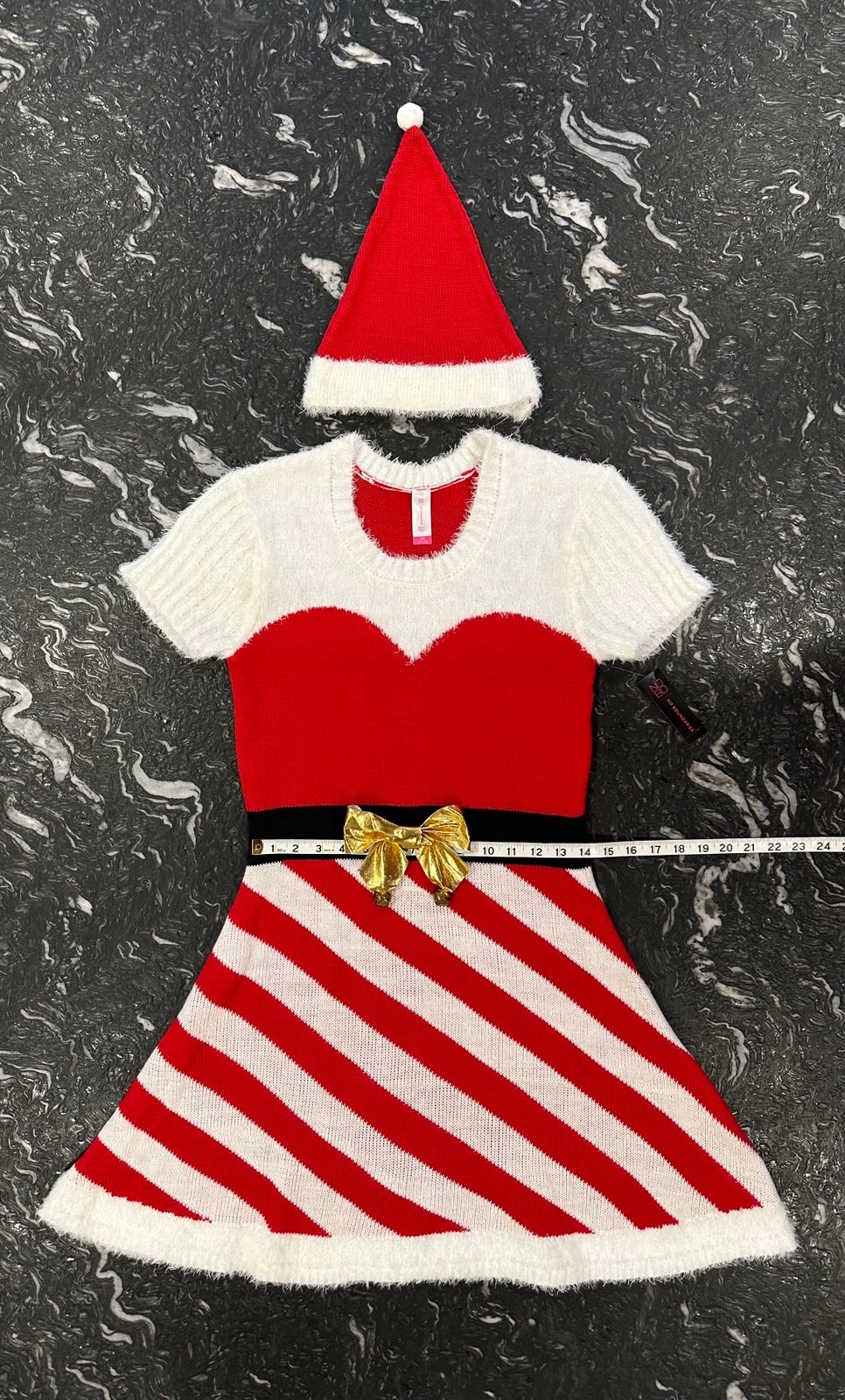 • 2 Gold colored Jingle Bells attached to the Gold colored Bow at the Waist