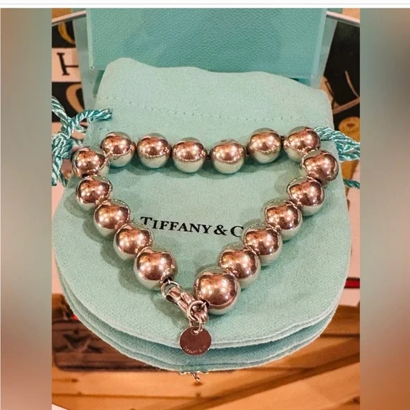 Authentic Tiffany & Co. Hardware Beads BraceletSize 10mm beadsSize 8cm or Length 19cmColor 925 Sterling silverFull inclusion with shopping bagWith COAGood used conditionPreloved sign of used wear scratch 1 ball had a small deformNo tarnish no discoloration no major damageCheck all the pictures before bid and buy responsibly agree and confirm to see all the condition of the item before buying all sales are finalno cancellation no return no exchange.Ask question.