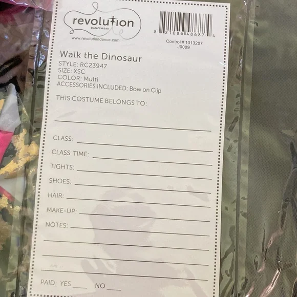 Spandex and printed coated spandex dressAttached elasticized spandex strapsFoil dot spandex neckline and waistbandAttached organdy skirt edged in horsehair under an organdy and printed coated spandex peplumAttached spandex shortsGlitter-free!INCLUDES★Hair bow with clip★HangerBrand:Revolution DanceSize:XSCCondition:NWT