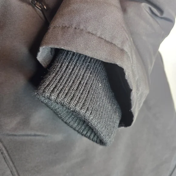 Sam Edelman Faux Fur Trim Puffed Parka Coat Jacket Black with Sherpa Fleece Lined Hood. Women's size XL. Super warm!Fill: 50% down 50% waterfowl feathersPerfect pre-owned condition.23" underarm to underarm 19.5" arm inseam (sleeve without cuff)20" arm inseam (including inner cuff)36" length from back of neck to bottom hem