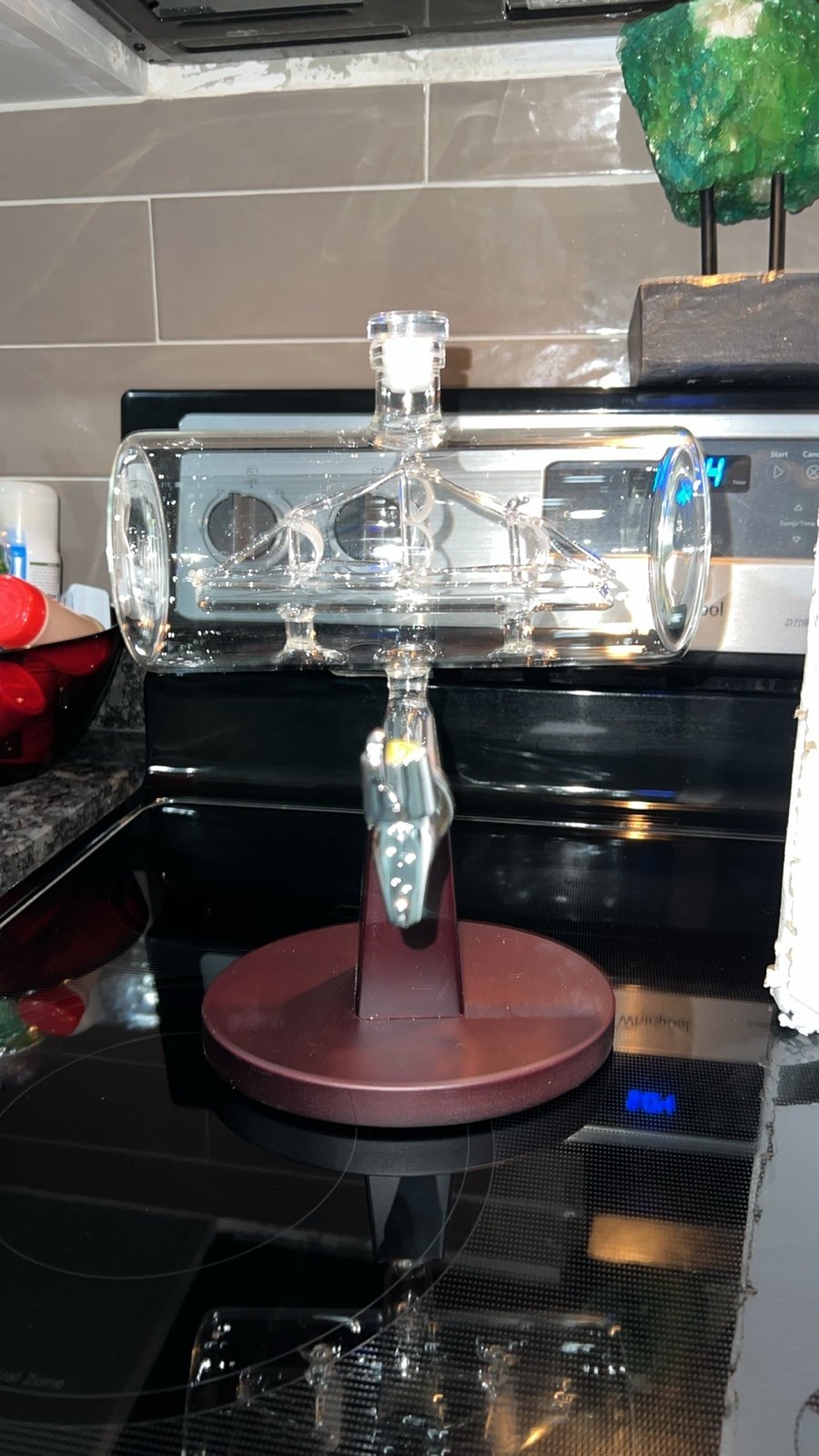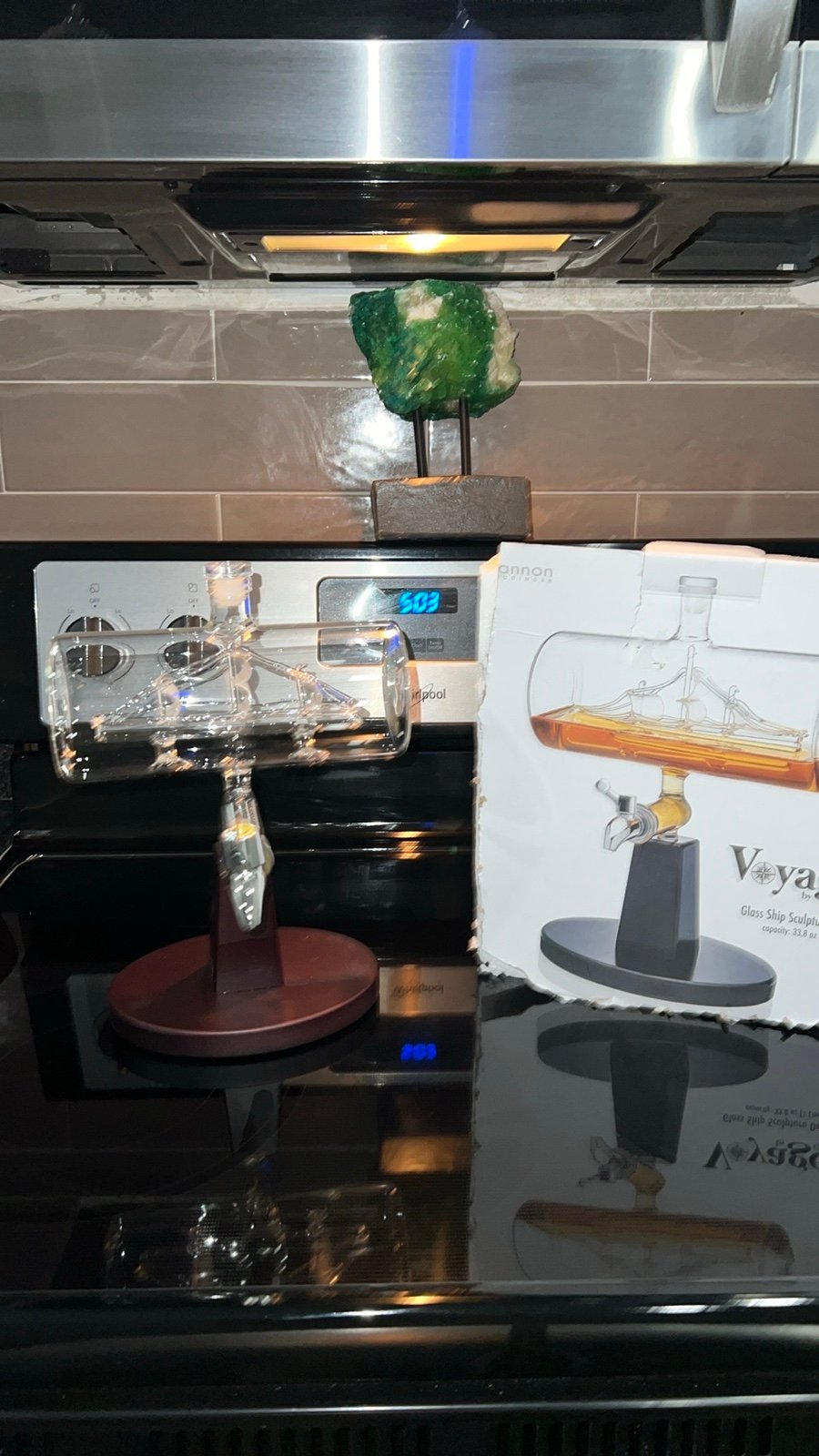 Shannon Godinger amazing Voyages crystal glass ship 33.8 oz pedestal decanter. Great for liquor, wine, etc. 12” to top of stopper. 7” across walnut finish base. Never used. No chips or cracks. Great for a gift please see all pictures for detail details if you have any questions, please reach out. If not, thank you for looking. Please see my other listings.