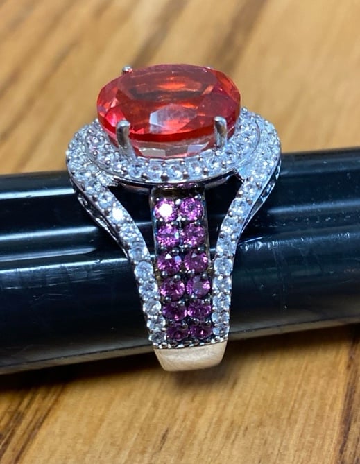 Stunning Sunfire Orange Quartz Multi Gemstone Pavé Crystal Ring