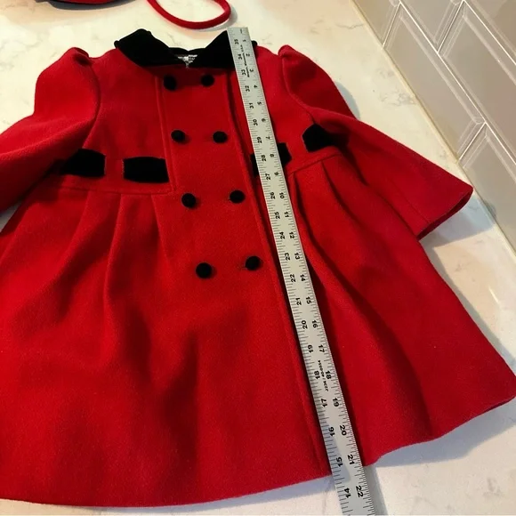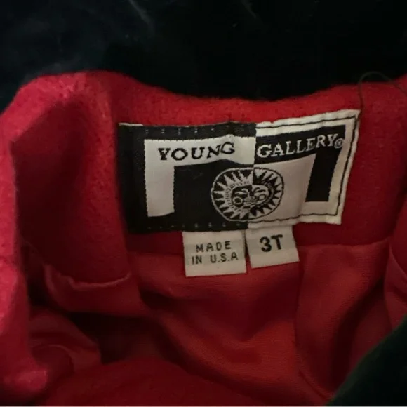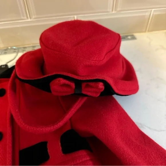 This beautiful vintage Young Gallery coat for toddler girls is a stunning addition to any special occasion outfit. The tailored look and long sleeves are perfect for chilly weather, while the red and black wool blend material adds a touch of style. The coat comes with a matching hat and is size 3T, making it a great fit for young girls.The coat is an original piece, made in the United States. It is perfect for those who appreciate vintage clothing and want a unique item for their child. Whether for a special occasion or everyday wear, this coat is sure to keep your child warm and stylish.EUC